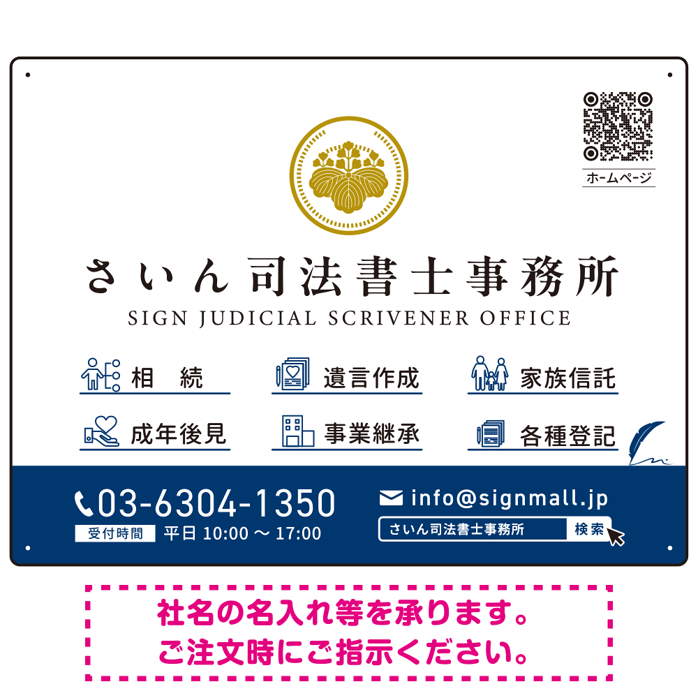 白地を活かしたシンプルで上品なデザインが、事務所の品格と信頼感を演出します。