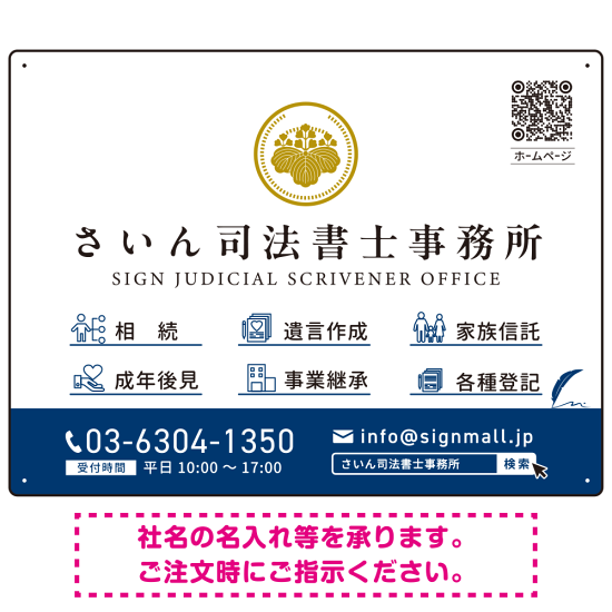 上品で分かりやすいアイコン付きデザイン 行政書士・司法書士事務所向けプレート看板 プレート看板 ブルー W600×H450 エコユニボード(SP-SMD690A-60x45U)