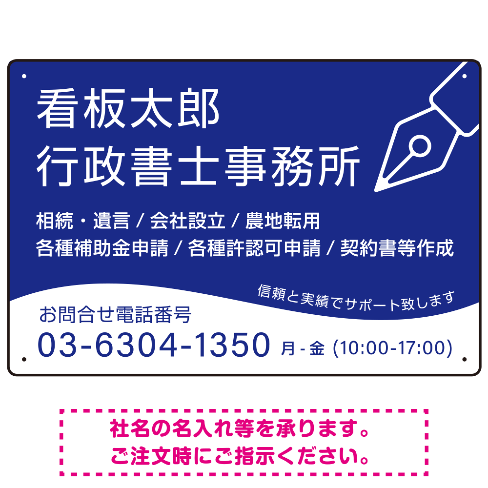 万年筆アイコンが印象的なデザイン 行政書士・司法書士事務所向けプレート看板 プレート看板 ブルー W450×H300 エコユニボード(SP-SMD695A-45x30U)
