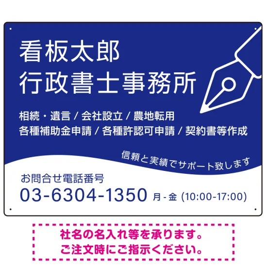 よくある質問:万年筆アイコンが印象的なデザイン 行政書士・司法書士事務所向けプレート看板 プレート看板 ブルー W600×H450 エコユニボード(SP-SMD695A-60x45U)