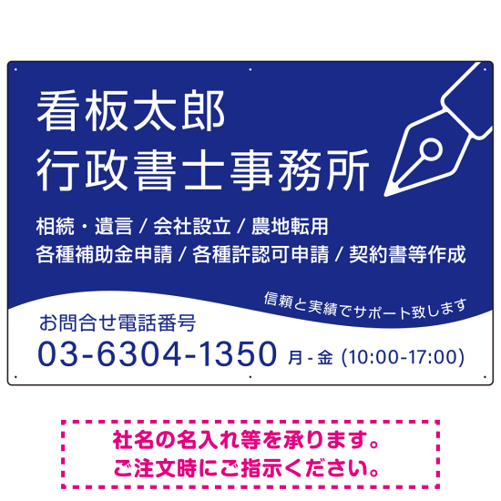 万年筆アイコンが印象的なデザイン 行政書士・司法書士事務所向けプレート看板 プレート看板 ブルー W900×H600 エコユニボード(SP-SMD695A-90x60U)