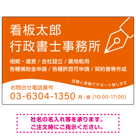 万年筆アイコンが印象的なデザイン 行政書士・司法書士事務所向けプレート看板 プレート看板 オレンジ色 W900×H600 エコユニボード(SP-SMD695C-90x60U)