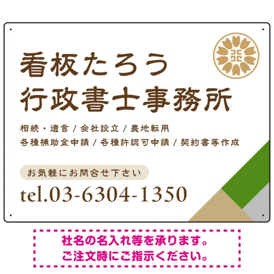 右下アクセント入りデザイン 行政書士・司法書士事務所向けプレート看板 プレート看板 グリーン W600×H450 エコユニボード(SP-SMD696B-60x45U)