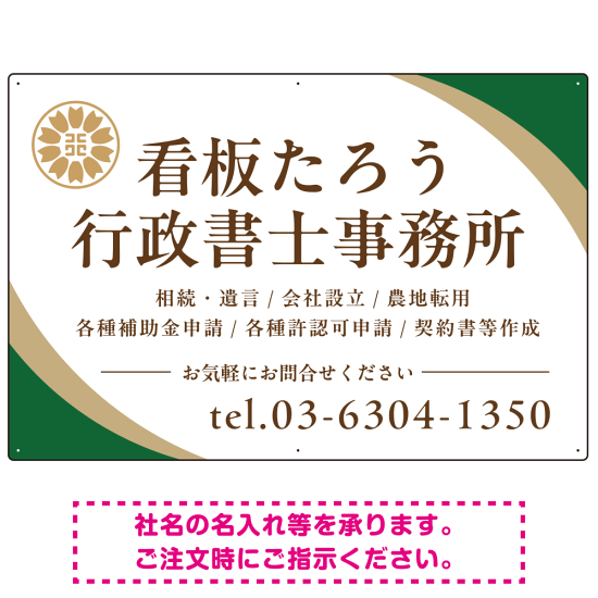 商品説明:対角ラインが際立つモダンデザイン 行政書士・司法書士事務所向けプレート看板 プレート看板 グリーン W900×H600 エコユニボード(SP-SMD697B-90x60U)