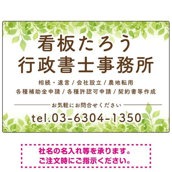グリーンテイストが優しい印象の行政書士・司法書士事務所向けデザインプレート看板