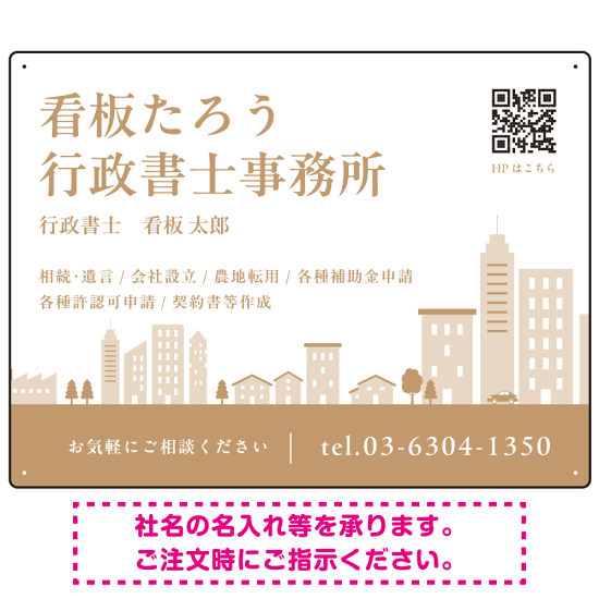 シンプルモダンな街並みデザイン 行政書士・司法書士事務所向けプレート看板 プレート看板 ブラウン W600×H450 エコユニボード(SP-SMD705C-60x45U)