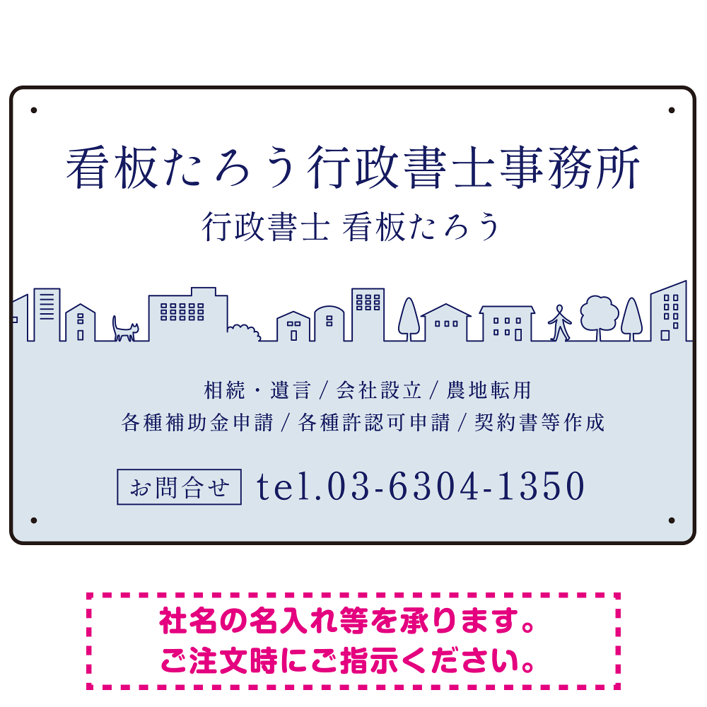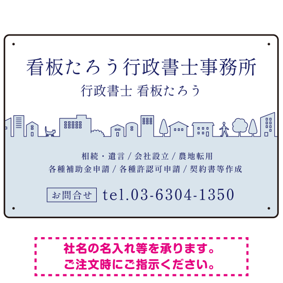 町並みイラストと柔らかな配色の行政書士・司法書士事務所向けデザインプレート看板 ブルー W450×H300 エコユニボード(SP-SMD700A-45x30U)