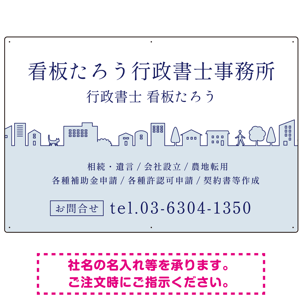 町並みイラストと柔らかな配色の行政書士・司法書士事務所向けデザインプレート看板 ブルー W900×H600 エコユニボード(SP-SMD700A-90x60U)