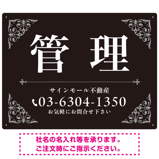商品説明:エレガントなコーナーデザイン 管理 不動産向けデザインプレート看 ブラック&シルバー W600×H450 エコユニボード(SP-SMD708D-60x45U)