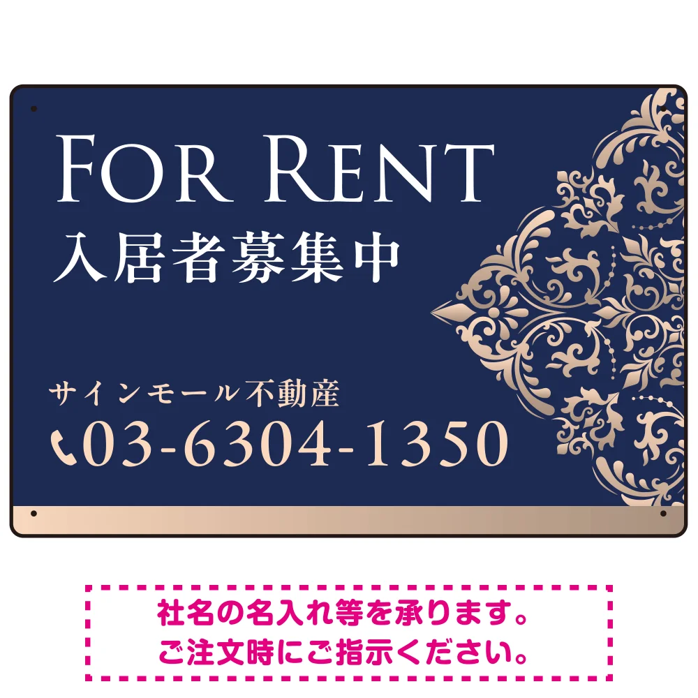 - 深い色合いと洗練された装飾 FOR RENT 入居者募集中 不動産向けデザインプレート看板