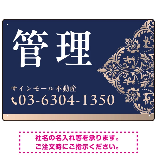 深い色合いと洗練された装飾 管理 不動産向けデザインプレート看板 ホワイト&ゴールド W450×H300 エコユニボード(SP-SMD710A-45x30U) の商品詳細