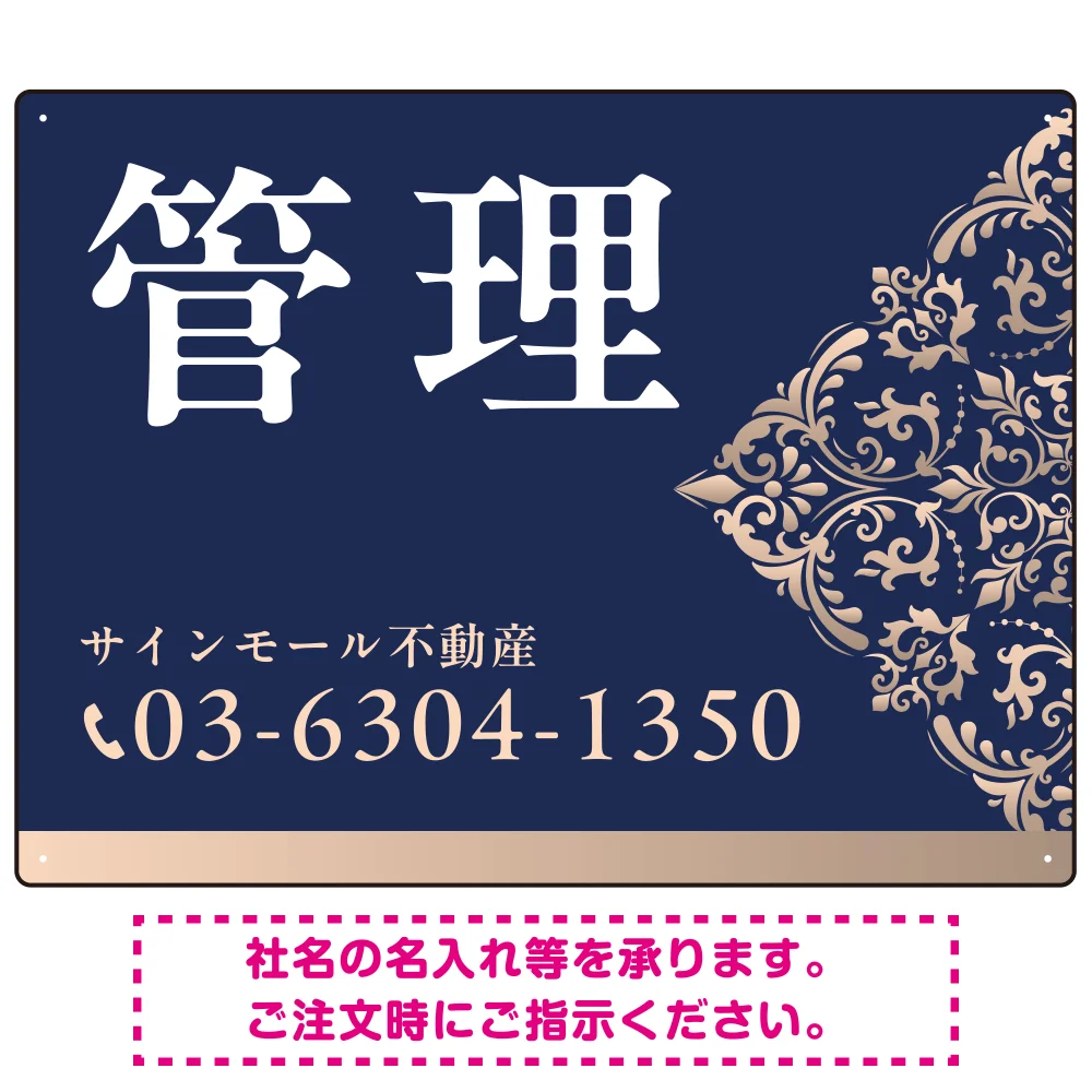 - 深い色合いと洗練された装飾 管理 不動産向けデザインプレート看板 ホワイト&ゴールド W600×H450 エコユニボード(SP-SMD710A-60x45U)