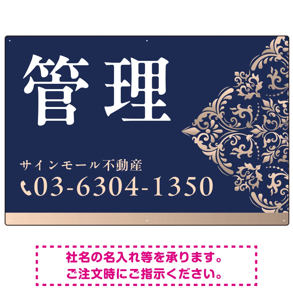 深い色合いと洗練された装飾 管理 不動産向けデザインプレート看板 ホワイト&ゴールド W900×H600 マグネットシート(SP-SMD710A-90x60M) の商品詳細