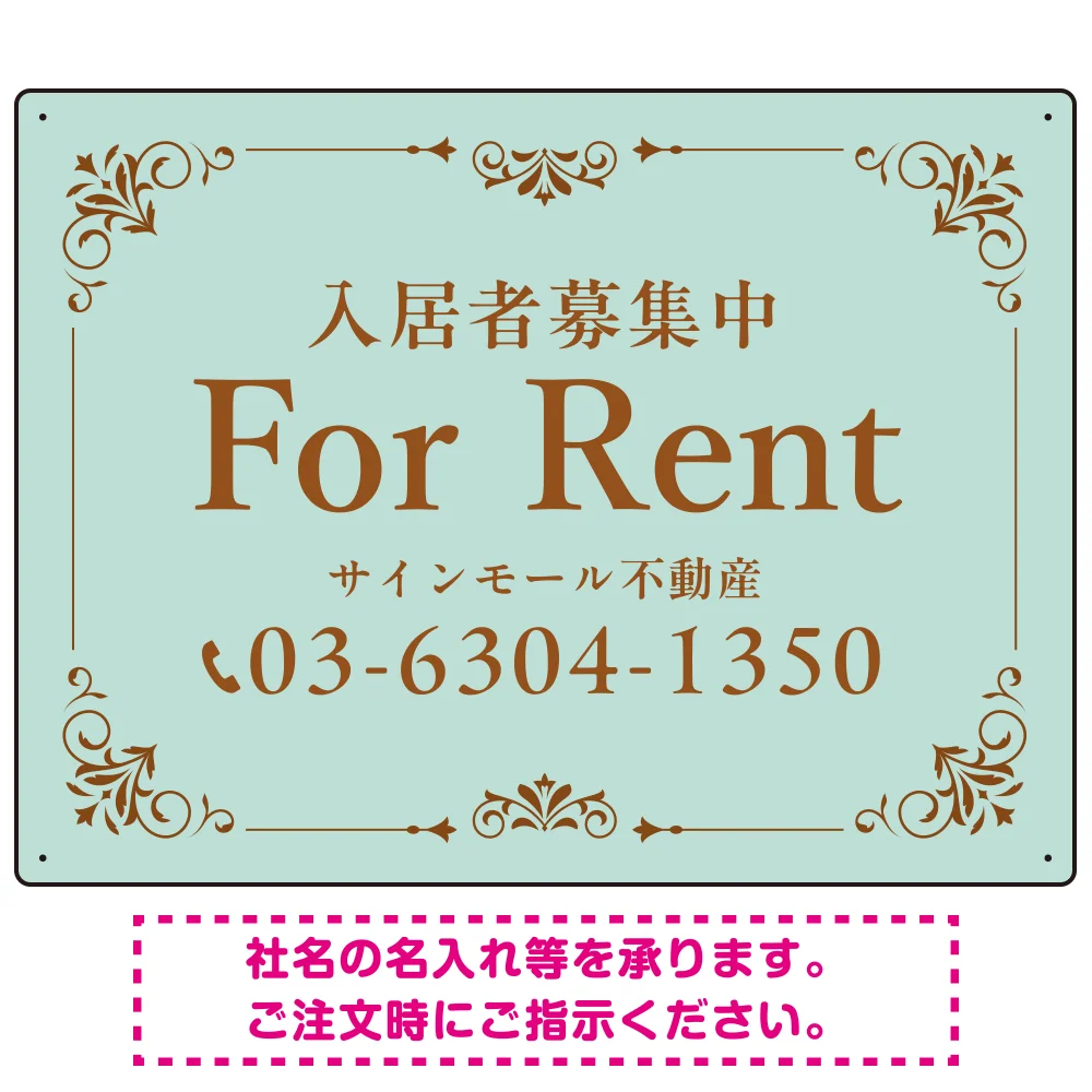 - 柔らかな色合いが魅力の上品デザイン FOR RENT 入居者募集中 不動産向けデザインプレート看板 ミントグリーン W600×H450 エコユニボード(SP-SMD712A-60x45U)