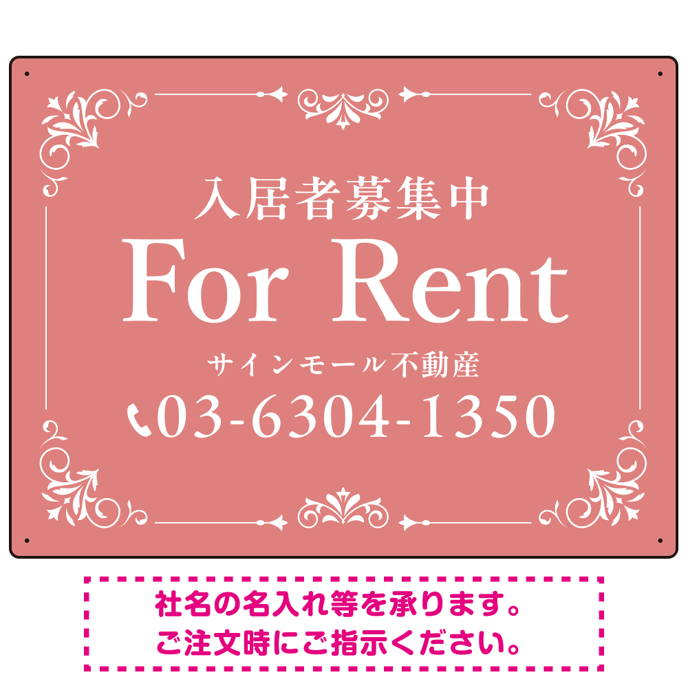 - 柔らかな色合いが魅力の上品デザイン FOR RENT 入居者募集中 不動産向けデザインプレート看板 くすみピンク W600×H450 マグネットシート(SP-SMD712B-60x45M)