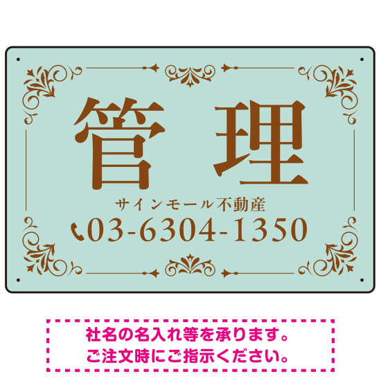 柔らかな色合いが魅力の上品デザイン 管理 不動産向けデザインプレート看板 ミントグリーン W450×H300 エコユニボード(SP-SMD713A-45x30U)