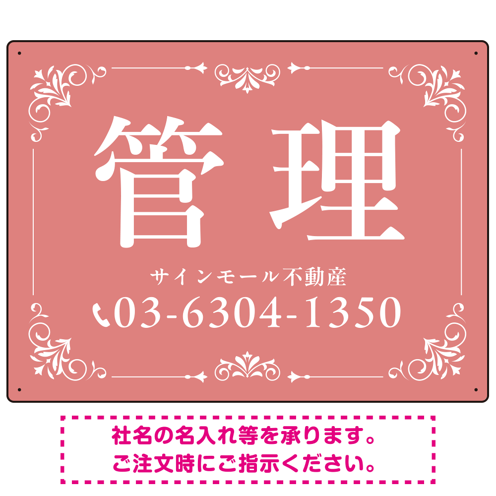 柔らかな色合いが魅力の上品デザイン 管理 不動産向けデザインプレート看板 くすみピンク W600×H450 エコユニボード(SP-SMD713B-60x45U)