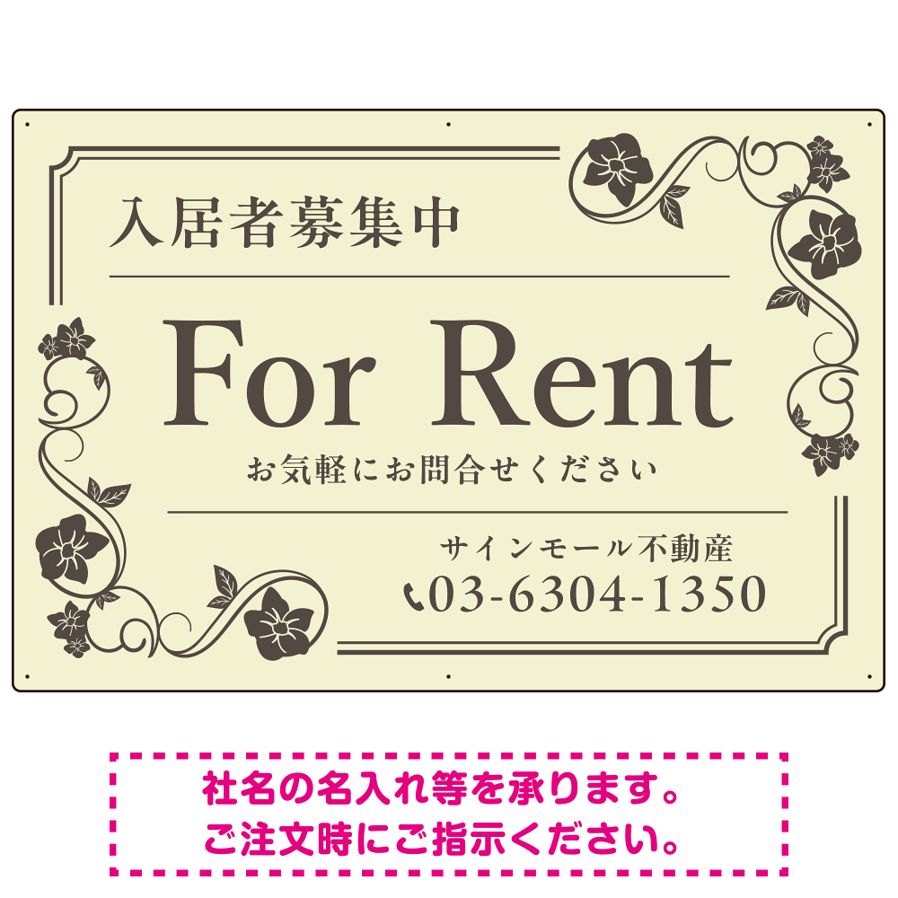 高級感漂う花柄モチーフ装飾 FOR RENT 入居者募集中 不動産向けデザインプレート看板 アイボリー W900×H600 エコユニボード(SP-SMD716B-90x60U)