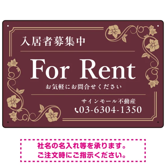 - 高級感漂う花柄モチーフ装飾 FOR RENT 入居者募集中 不動産向けデザインプレート看板