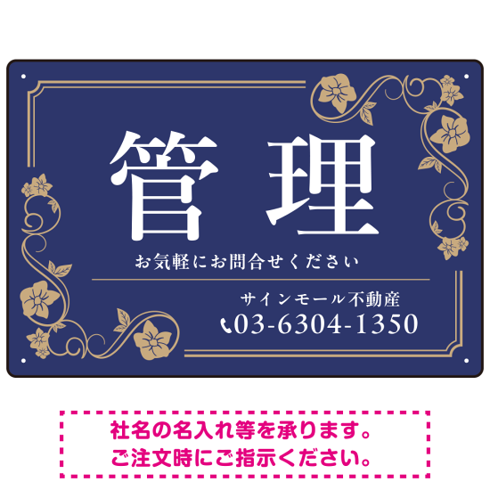 高級感漂う花柄モチーフ装飾 管理 不動産向けデザインプレート看板 ネイビー W450×H300 エコユニボード(SP-SMD717A-45x30U)
