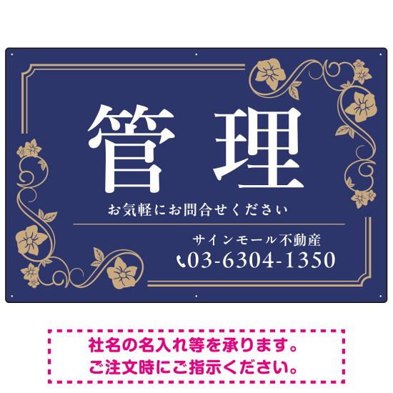 高級感漂う花柄モチーフ装飾 管理 不動産向けデザインプレート看板 ネイビー W900×H600 エコユニボード(SP-SMD717A-90x60U)
