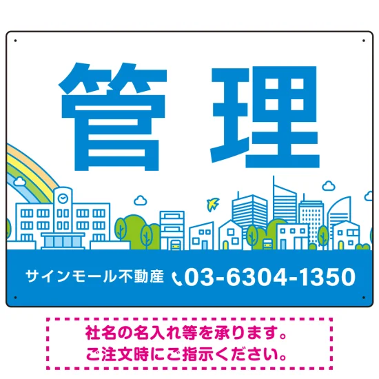 カラフルな街並みが映える明るいデザイン 管理 不動産向けデザインプレート看板 ブルー W600×H450 マグネットシート(SP-SMD719A-60x45M)