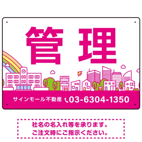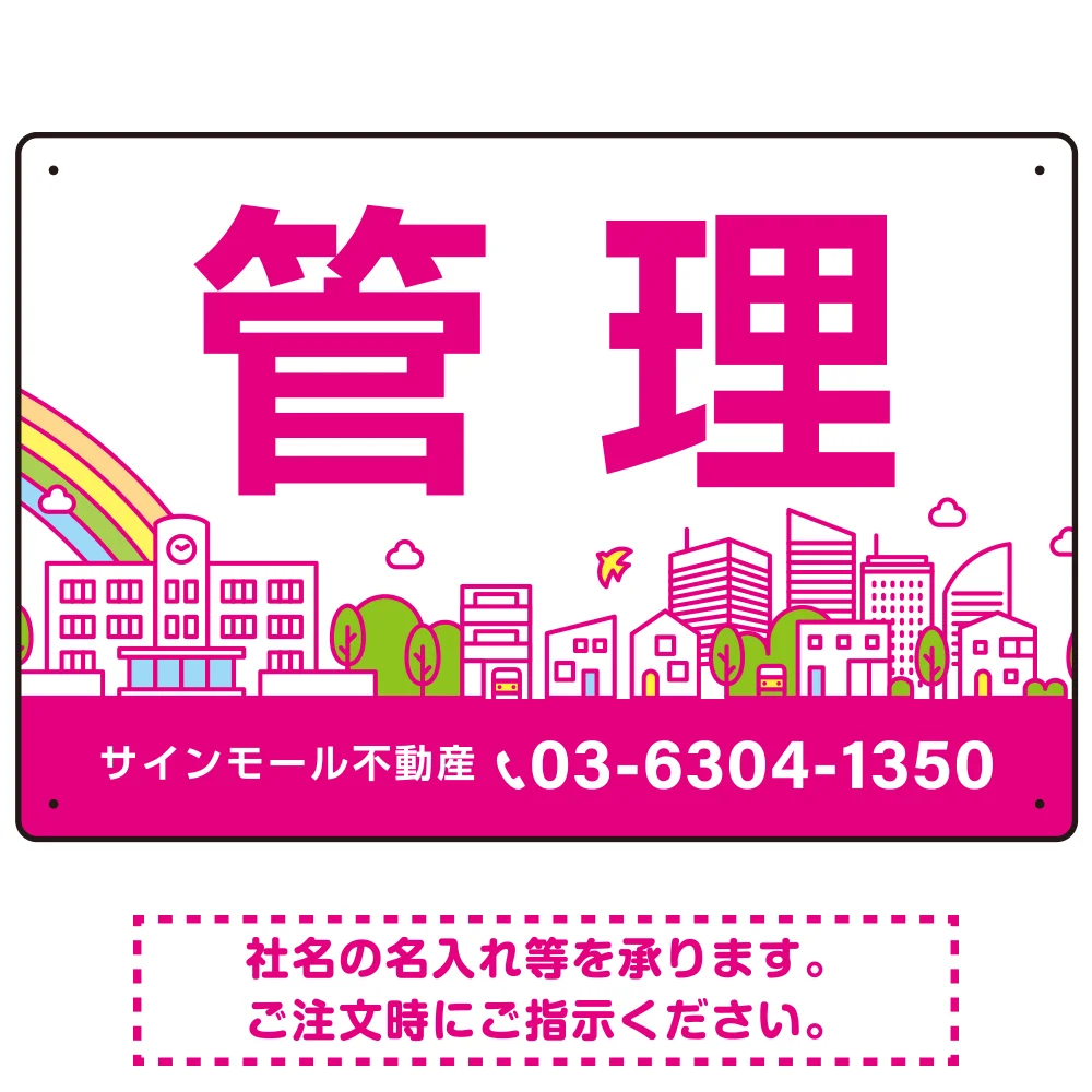 - カラフルな街並みが映える明るいデザイン 管理 不動産向けデザインプレート看板 ピンク W450×H300 エコユニボード(SP-SMD719B-45x30U)