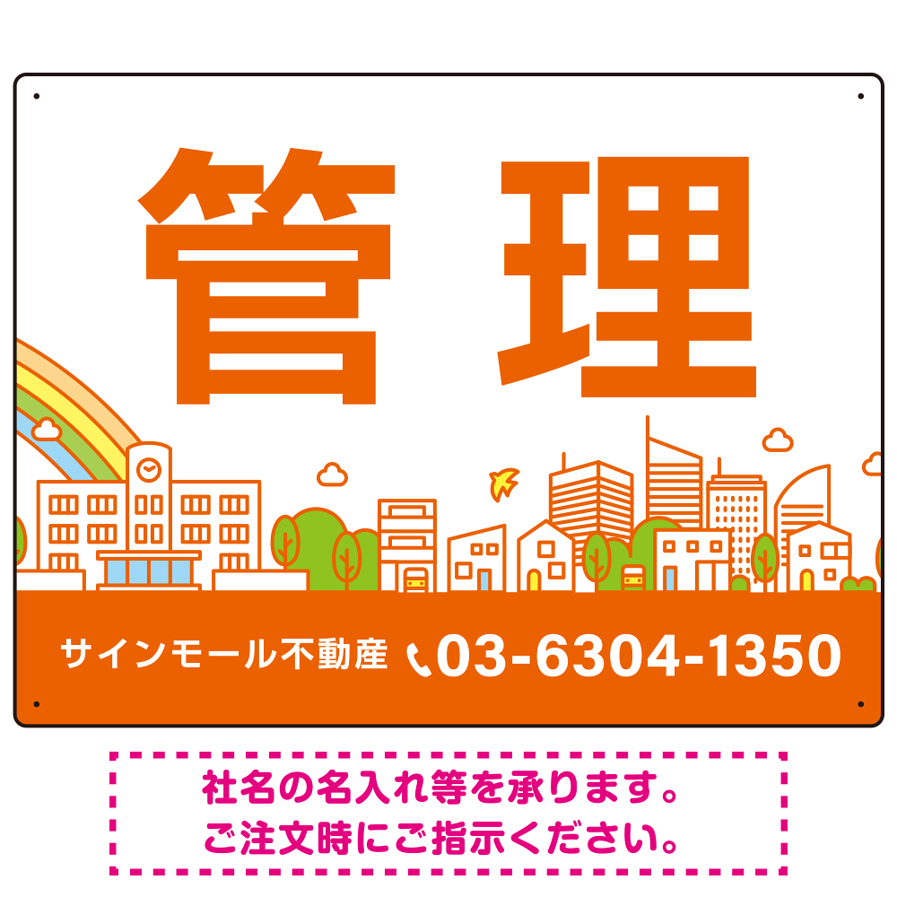 カラフルな街並みが映える明るいデザイン 管理 不動産向けデザインプレート看板 オレンジ色 W600×H450 アルミ複合板(SP-SMD719C-60x45A)