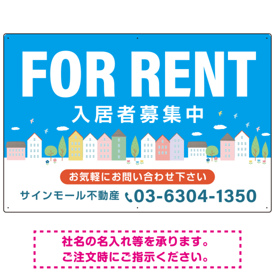 「空と街並みの鮮やかなブルーデザイン FOR RENT 入居者募集中 不動産向けデザインプレート看板 W900×H600 マグネットシート(SP-SMD720-90x60M)」に関してご不明な点がございましたらお気軽にお問い合わせください。