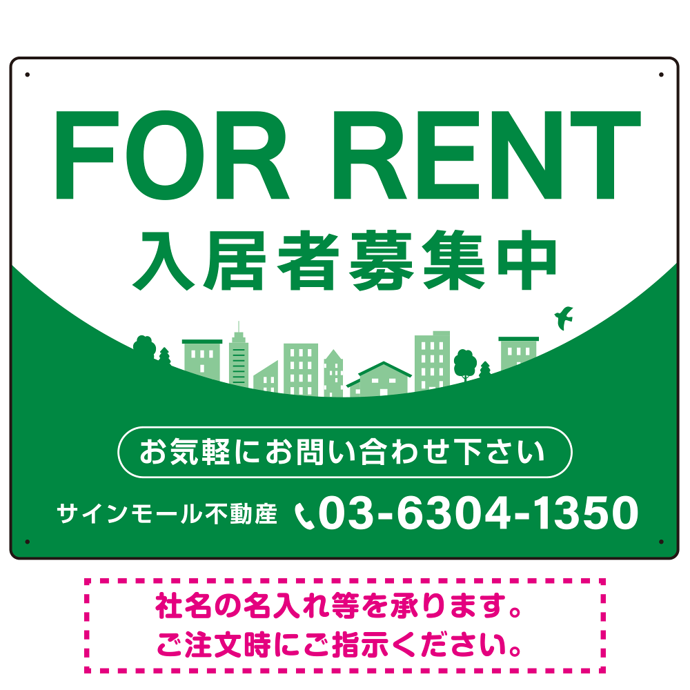 カーブが美しい明るい街並みデザイン FOR RENT 入居者募集中 不動産向けデザインプレート看板 グリーン W600×H450 エコユニボード(SP-SMD721C-60x45U)