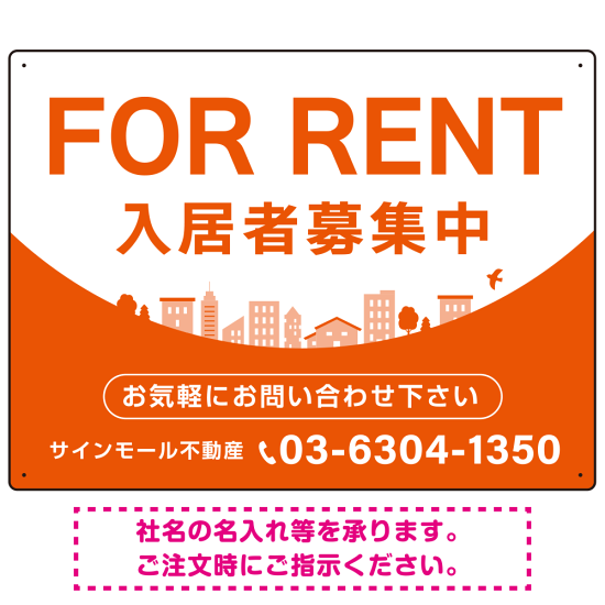 カーブが美しい明るい街並みデザイン FOR RENT 入居者募集中 不動産向けデザインプレート看板 オレンジ W600×H450 エコユニボード(SP-SMD721D-60x45U)