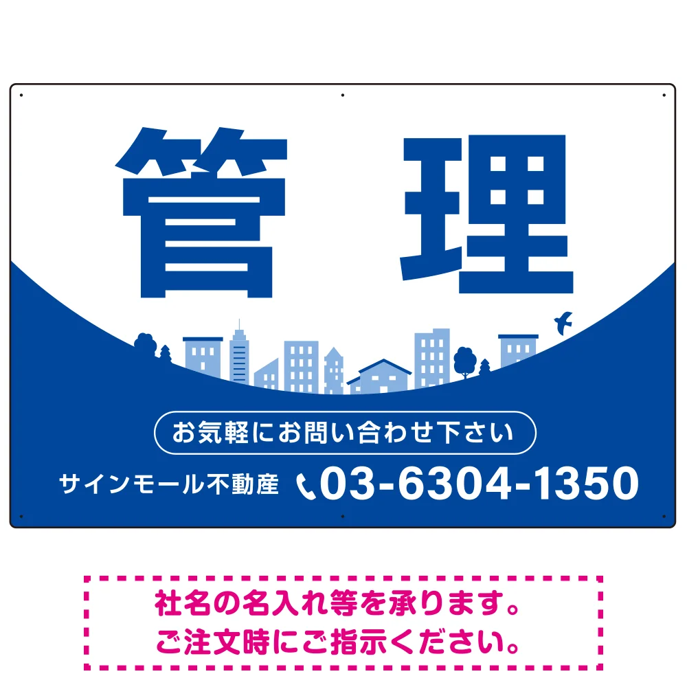 カーブが美しい明るい街並みデザイン 管理 不動産向けデザインプレート看板 ブルー W900×H600 アルミ複合板(SP-SMD722B-90x60A)