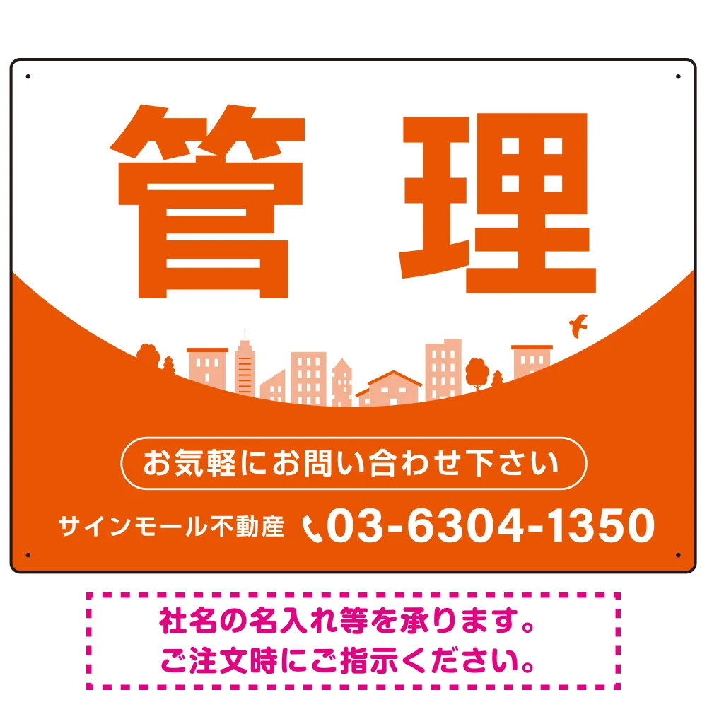 - カーブが美しい明るい街並みデザイン 管理 不動産向けデザインプレート看板 オレンジ W600×H450 アルミ複合板(SP-SMD722D-60x45A)