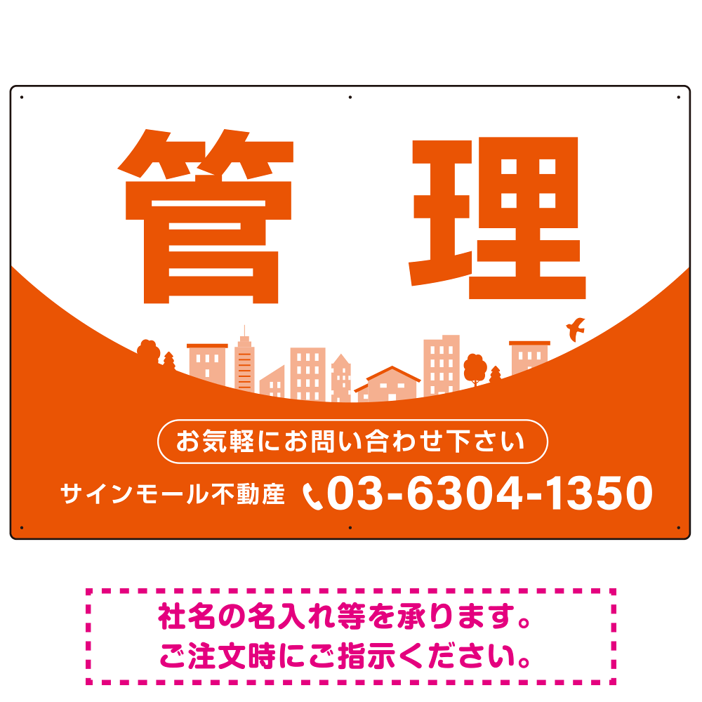 カーブが美しい明るい街並みデザイン 管理 不動産向けデザインプレート看板 オレンジ W900×H600 エコユニボード(SP-SMD722D-90x60U)