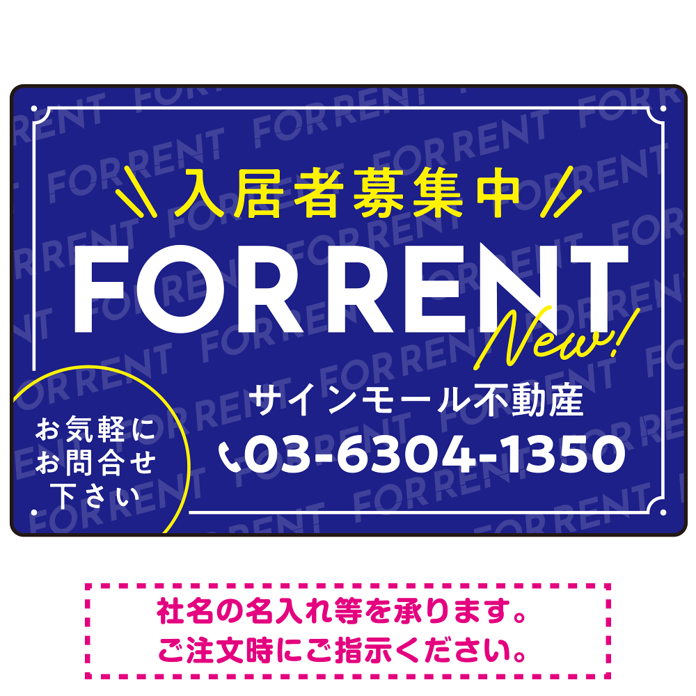 NEWの文字がアクセントの爽やかデザイン FOR RENT 入居者募集中 不動産向けデザインプレート看板 ブルー W450×H300 エコユニボード(SP-SMD725B-45x30U)