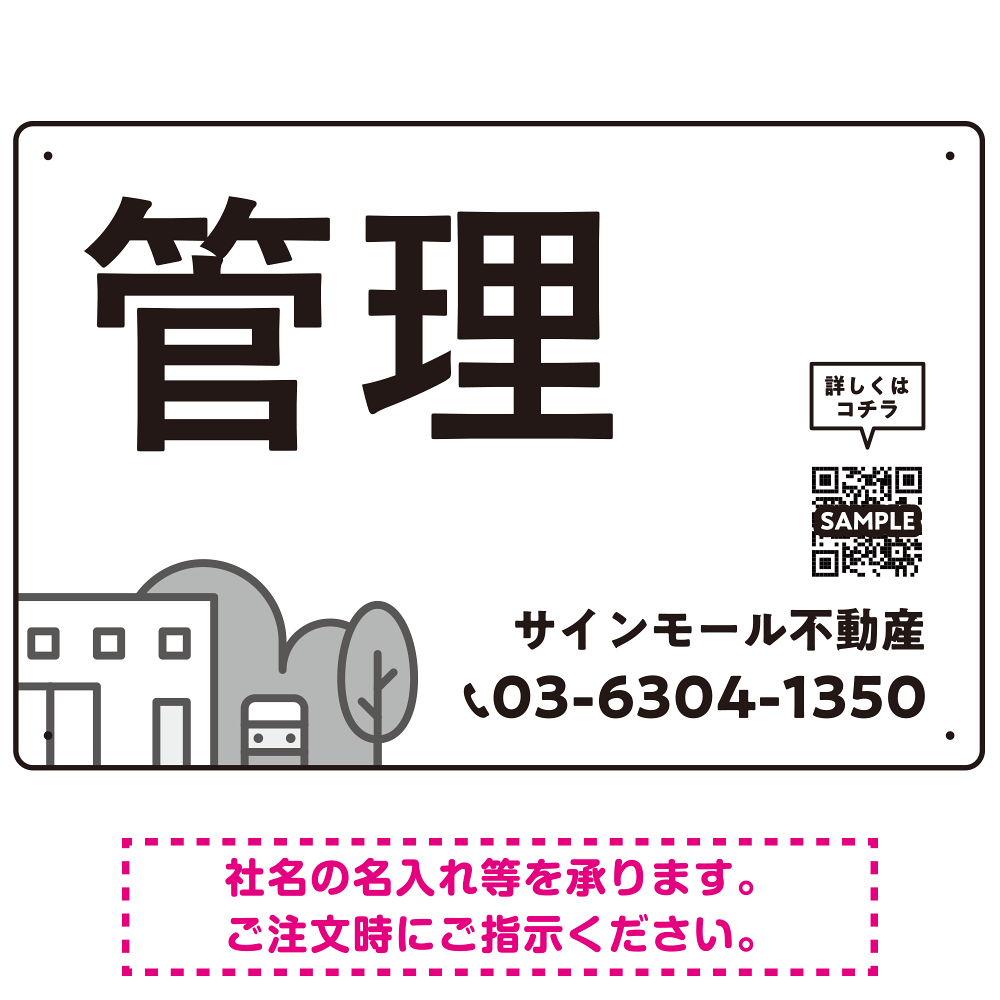 モノトーンのシンプルデザイン 不動産向けデザインプレート看板 管理 W450×H300 エコユニボード(SP-SMD726B-45x30U)