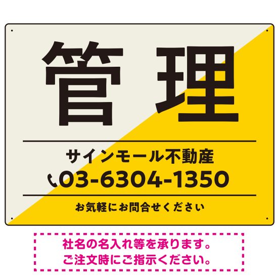 大胆な斜めデザインが特徴的な管理 不動産向けデザインプレート看板 イエロー W600×H450 エコユニボード(SP-SMD730A-60x45U)