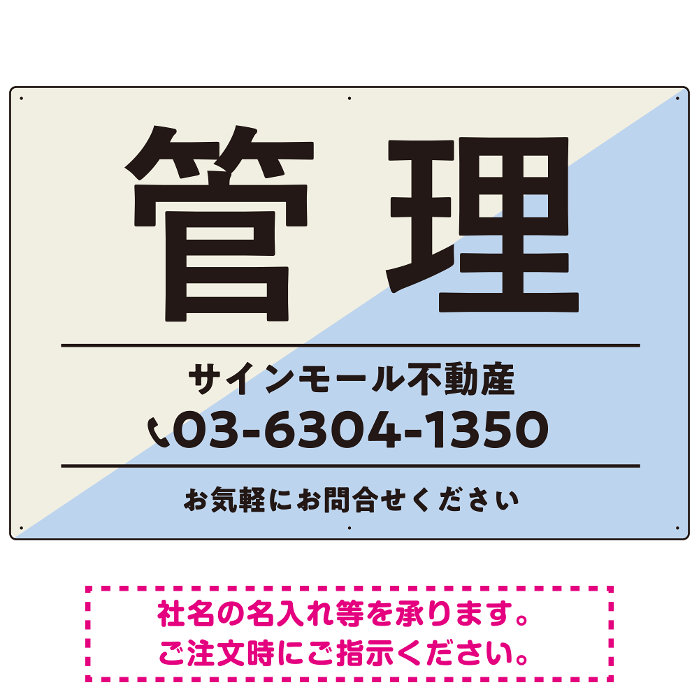 大胆な斜めデザインが特徴的な管理 不動産向けデザインプレート看板 ブルー W900×H600 エコユニボード(SP-SMD730D-90x60U)