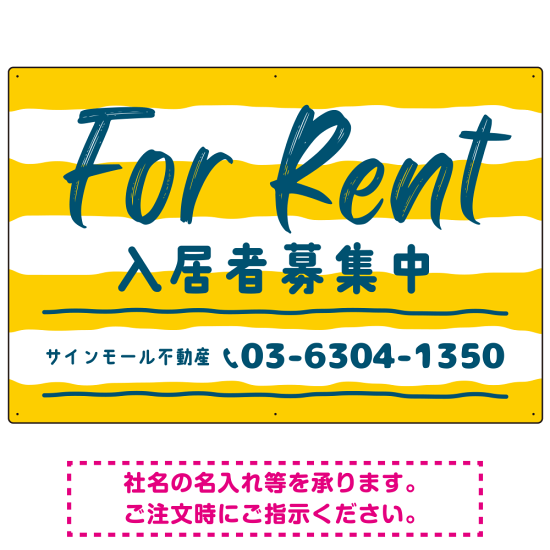 手描き風ストライプ模様 FOR RENT 入居者募集中 不動産向けデザインプレート看板 イエロー W900×H600 エコユニボード(SP-SMD731A-90x60U)
