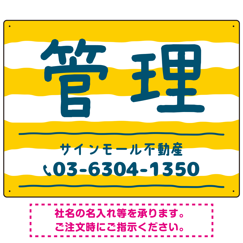 手描き風ストライプ模様 管理 不動産向けデザインプレート看板 イエロー W600×H450 エコユニボード(SP-SMD732A-60x45U)