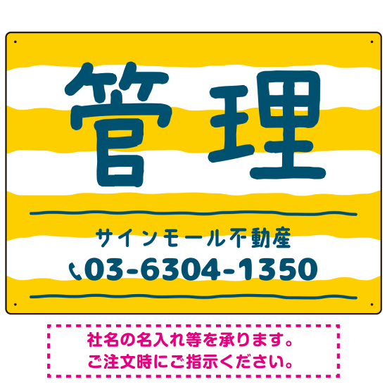 商品説明:手描き風ストライプ模様 管理 不動産向けデザインプレート看板 イエロー W600×H450 エコユニボード(SP-SMD732A-60x45U)