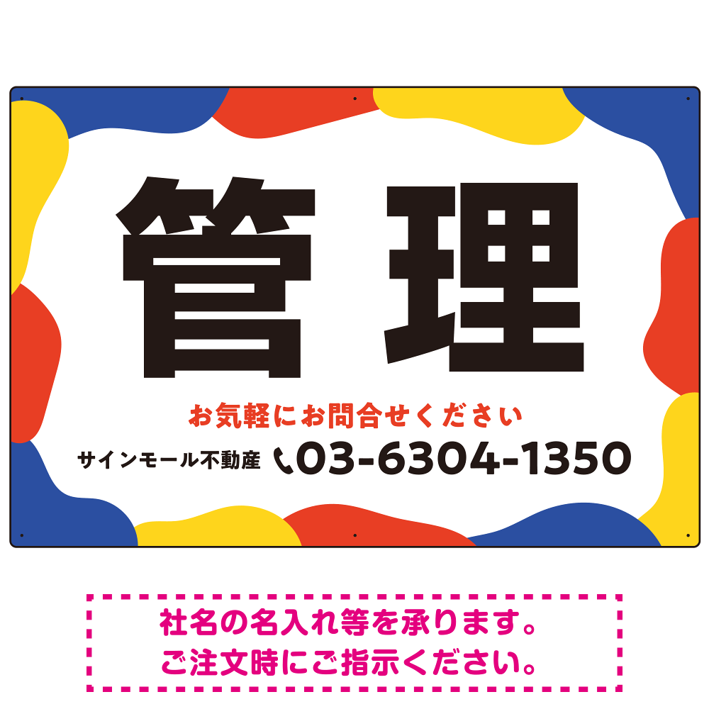 商品説明:元気で目を引くカラフルな大胆フレーム 管理 不動産向けデザインプレート看板 ブルー W900×H600 エコユニボード(SP-SMD734A-90x60U)