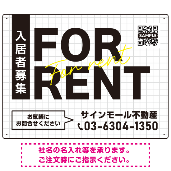 - FOR RENT 入居者募集中用プレート看板