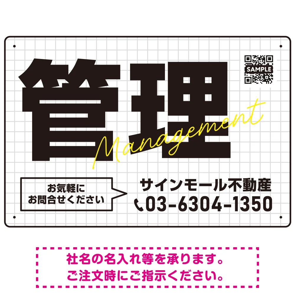 グリッドデザインが際立つ不動産向けデザインプレート看板 管理 W450×H300 アルミ複合板(SP-SMD735B-45x30A)