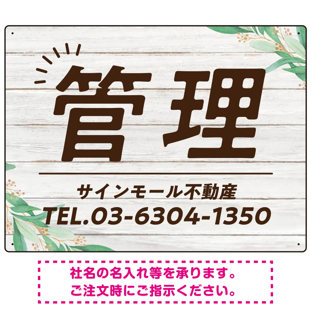 ウッディな風合いと葉のモチーフが柔らかい 不動産向けデザインプレート看板 管理 W600×H450 エコユニボード(SP-SMD736B-60x45U)