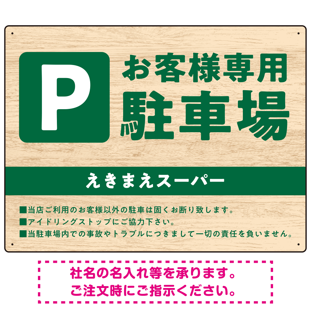 木目の落ち着いた印象で伝える駐車場看板デザインプレート看板 W600×H450 エコユニボード(SP-SMD746-60x45U)