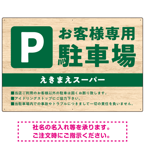 木目の落ち着いた印象で伝える駐車場看板デザインプレート看板 W900×H600 エコユニボード(SP-SMD746-90x60U)