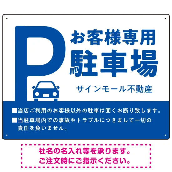 - 「お客様専用」の文字と車アイコンで専用感がしっかり伝わります。
