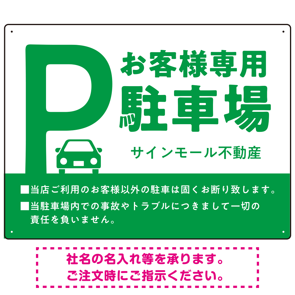- 「お客様専用」の文字と車アイコンで専用感がしっかり伝わります。
