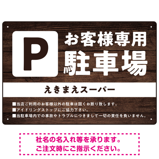 落ち着いた雰囲気のある木目風デザインの駐車場向けデザインプレート看板